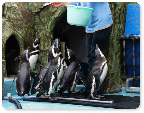 アシカをはじめとした、海のいきものたちが元気いっぱいにお食事をする様子が飼育員による解説付きでご覧いただけます。